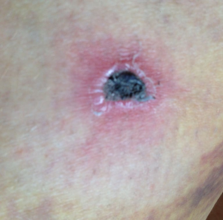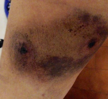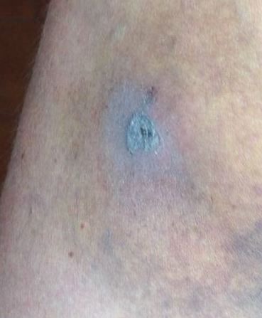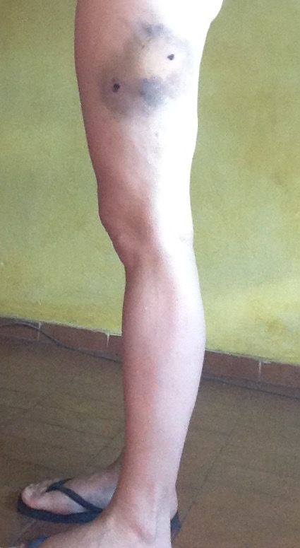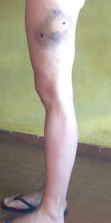 Mordida de perro en la pierna izquierda de una mujer.