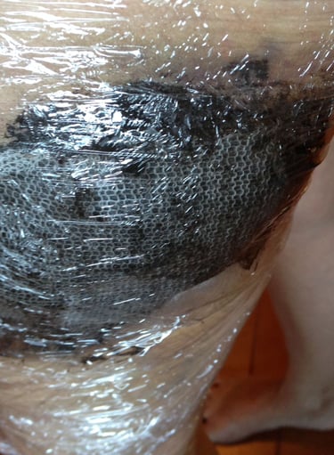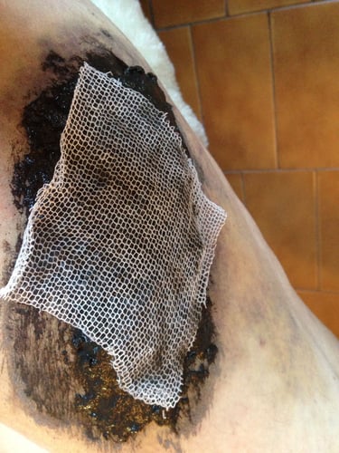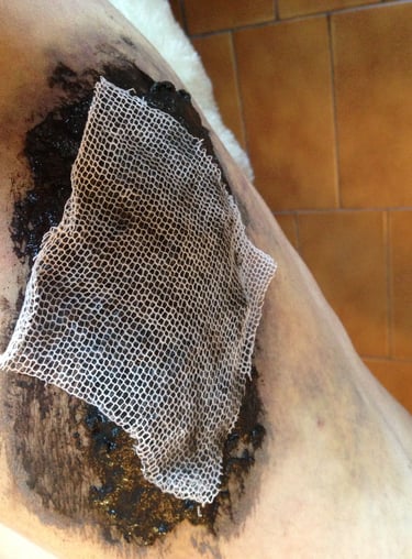Durante las primeras dos semanas se aplicaron a diario cataplasmas con barro y Ceniza Curativa Homa, lo que ayudó con la inflamación. Y siempre polvo de Ceniza Curativa Homa de forma localizada en las heridas, las cuales comenzaron a cicatrizar prontamente.