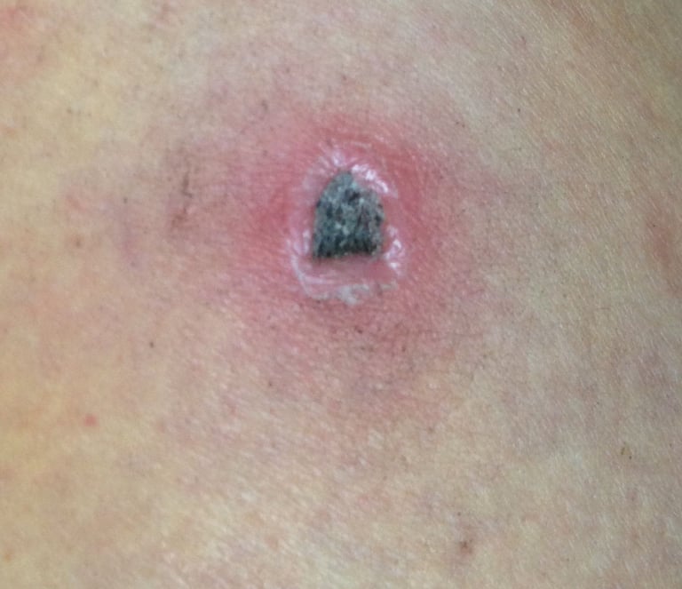 Se presentaron algunas secreciones localizadas durante el trans-curso del proceso de curación, que también fueron tratadas siguiendo recomendaciones de la medicina ayurvédica. Pero nunca fiebre ni síntomas de infección, rabia, o algún otro síntoma general que pudiera relacionarse con la mordida de la perra.